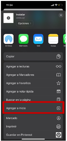 5- Una vez presionada la flecha, deslice hacia arriba y seleccione la opción “agregar al inicio”
