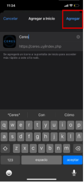 6- Darle aceptar a la opción y automáticamente quedará la app en su pantalla de inicio